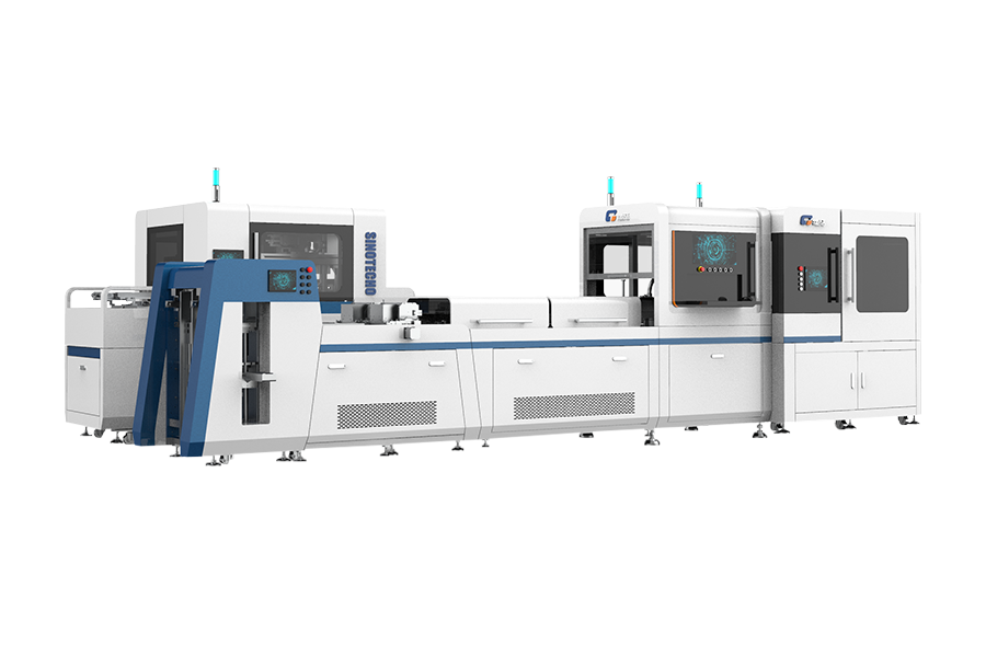 TG-CA60P煙包高速開口盒數(shù)字化整線實(shí)現(xiàn)了棧板供內(nèi)模及圍條、上/下蓋、面紙的供送、圍合、上膠、合攏、校正、預(yù)成型、保壓、打角、定位、成型、正壓、四面壓泡、出盒等動作在一條生產(chǎn)線上自動完成。線體生產(chǎn)效率高,運(yùn)行穩(wěn)定。